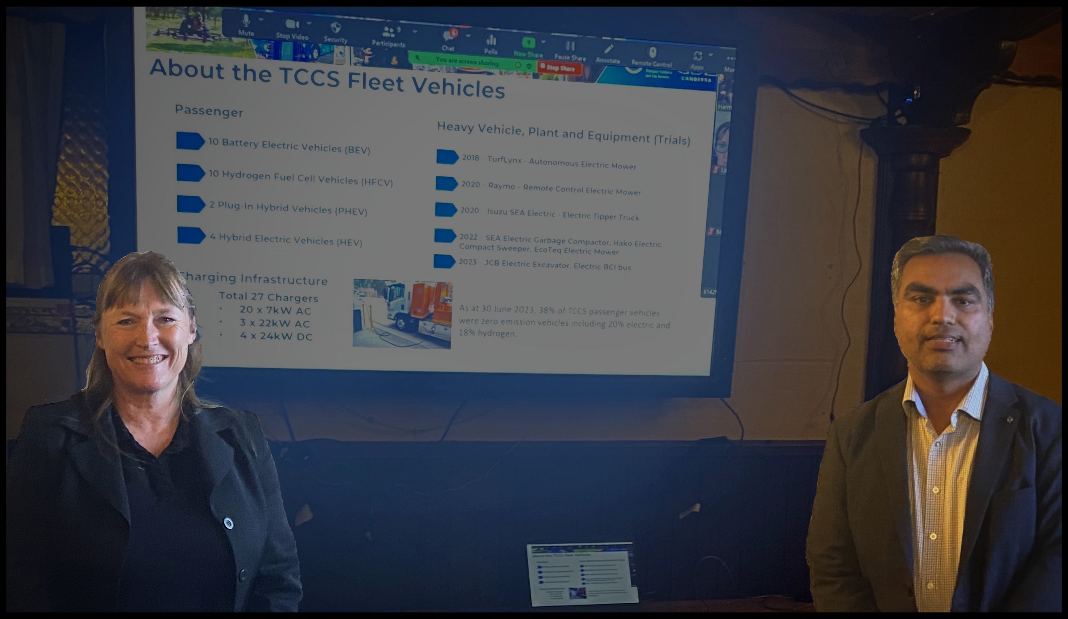 Trish Campbell and Satinder Sahota from City Services (TCCS) in the ACT Government gave an extremely interesting presentation on how TCCS is transitioning to EVs.