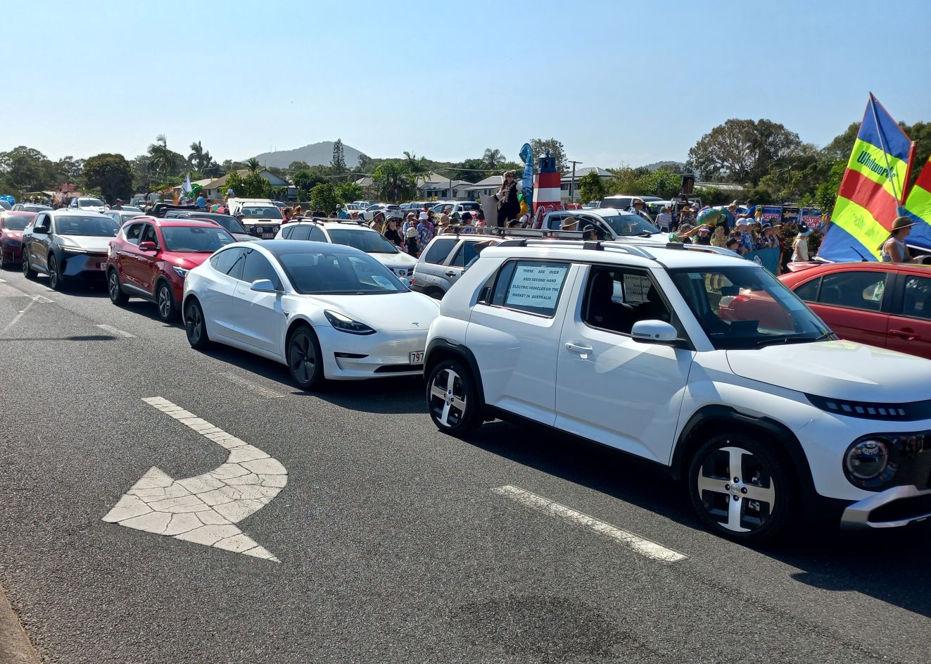 Above: EVs waiting for Pinefest parade