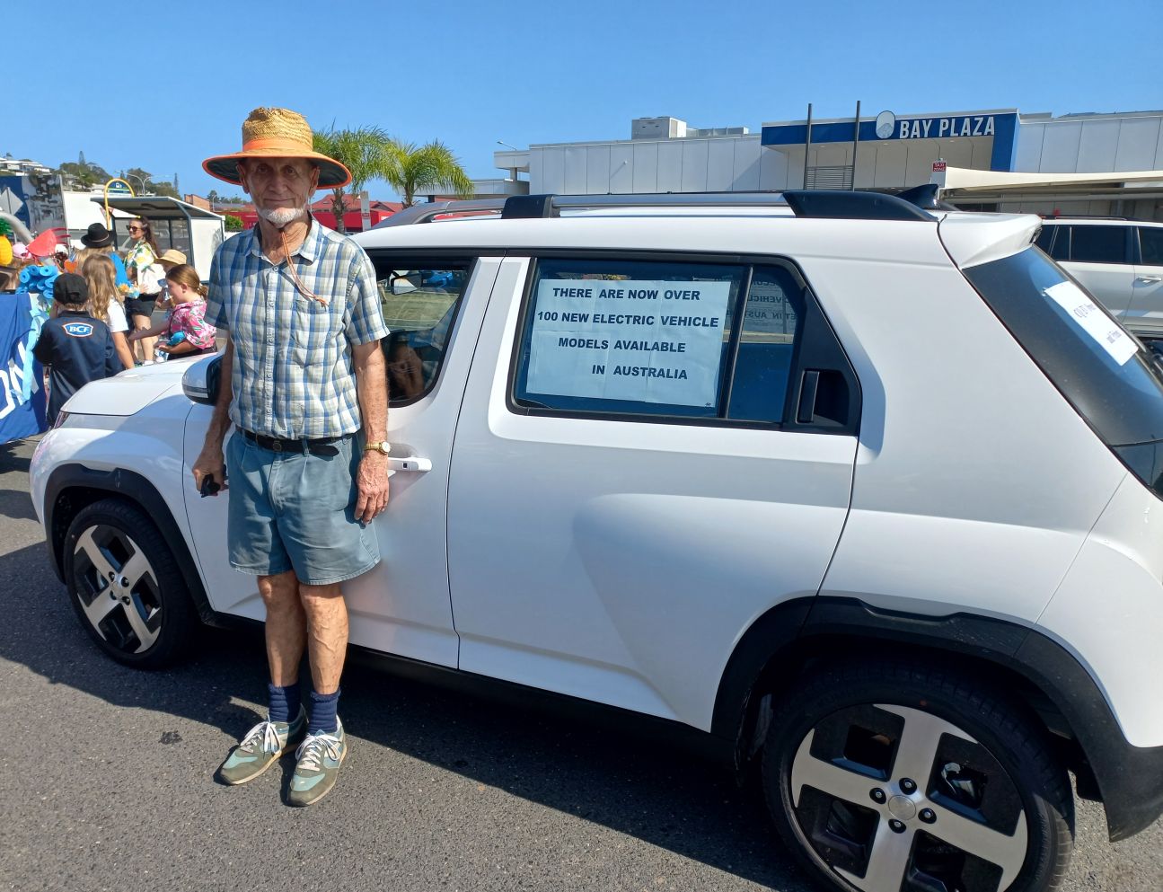 The EVs were ideal vehicles to drive in a parade with slow stop-start progress required to match the with no engine running walking speed of the floats. The drivers also appreciated the air conditioning which kept them cool, with no engine running, while waiting for the start. Many spectators saw an EV up close for the first time.