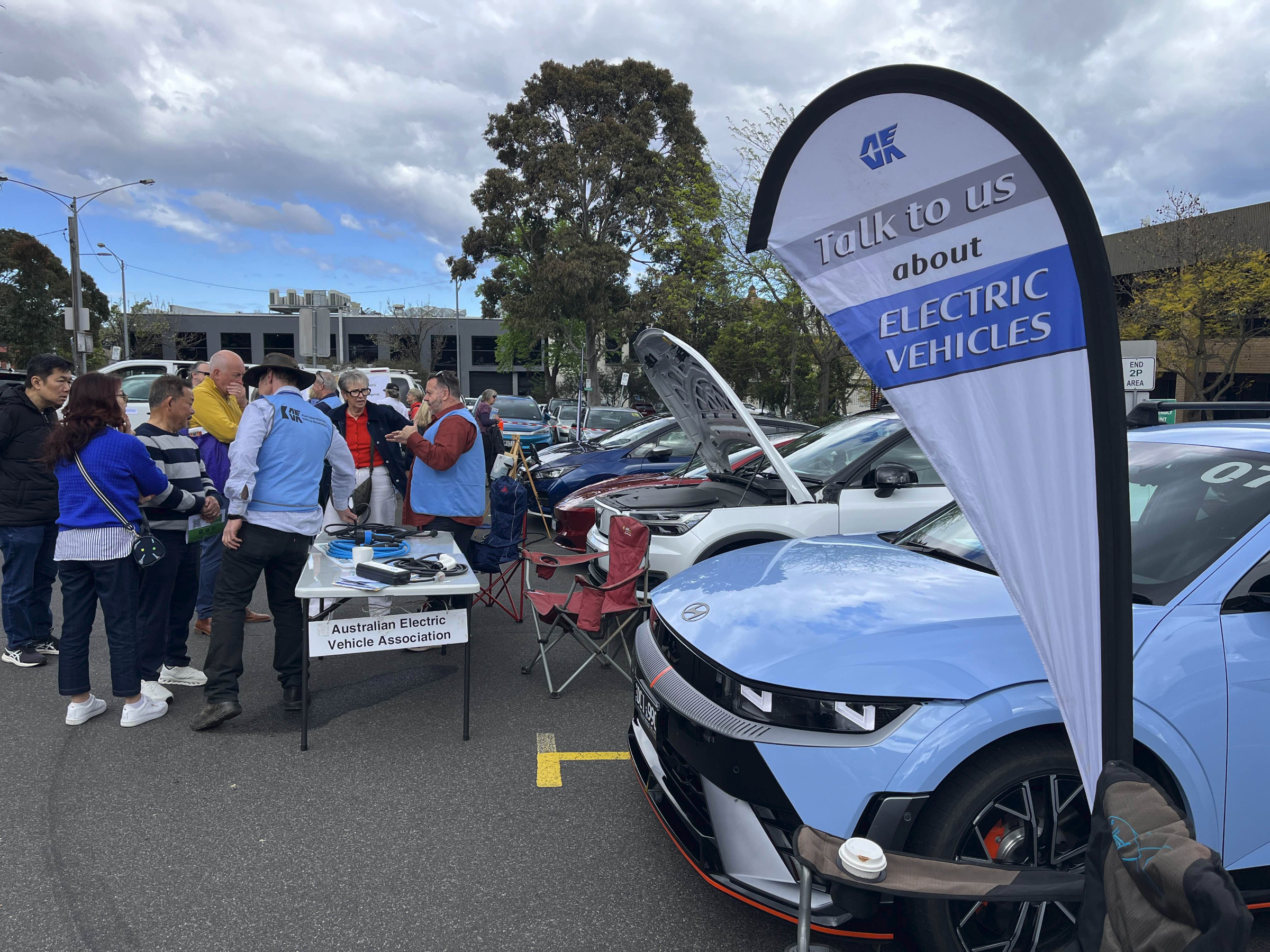 AEVA had a fantastic day at Electrify Boroondara! We had an outdoor table with four EVs on show: a Volvo XC40 Recharge, a Tesla, a Nissan Leaf, and the eye-catching Hyundai Ioniq 5N in Racing Blue, which powered the BBQ using its V2L feature. Our indoor stall was just as busy, with a steady flow of visitors all day.