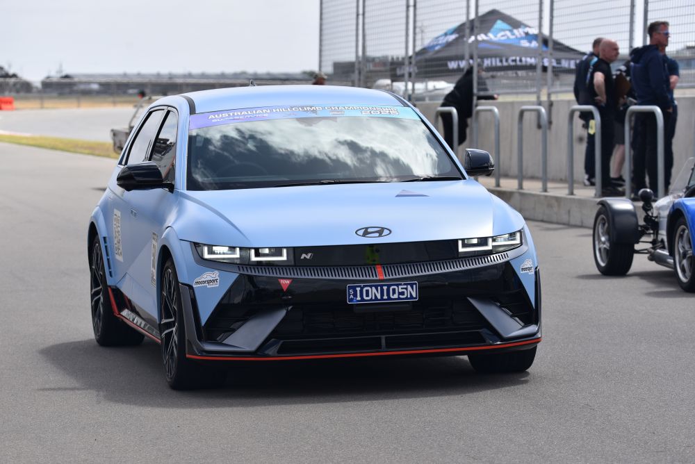 As Day 1 rolled on, we saw Mike, between runs, take up the offer to trickle-charge on his Volvo AC charger from the pit carports while paying close attention to battery temperature and tyre pressures. Sarge deployed his V2L espresso machine, his two mid-day times reflected some over-driving (and possibly jetlag), but he book-ended the day just shy of his opening gambit with a 63.81s. Mike honed in on his optimal, relentlessly improving to end the day with a stunning 58.09s, just 0.18 behind longtime-rival Tim Possingham driving his top-spec McLaren in the Limited Modified Road Car (d) 4001cc and over class.