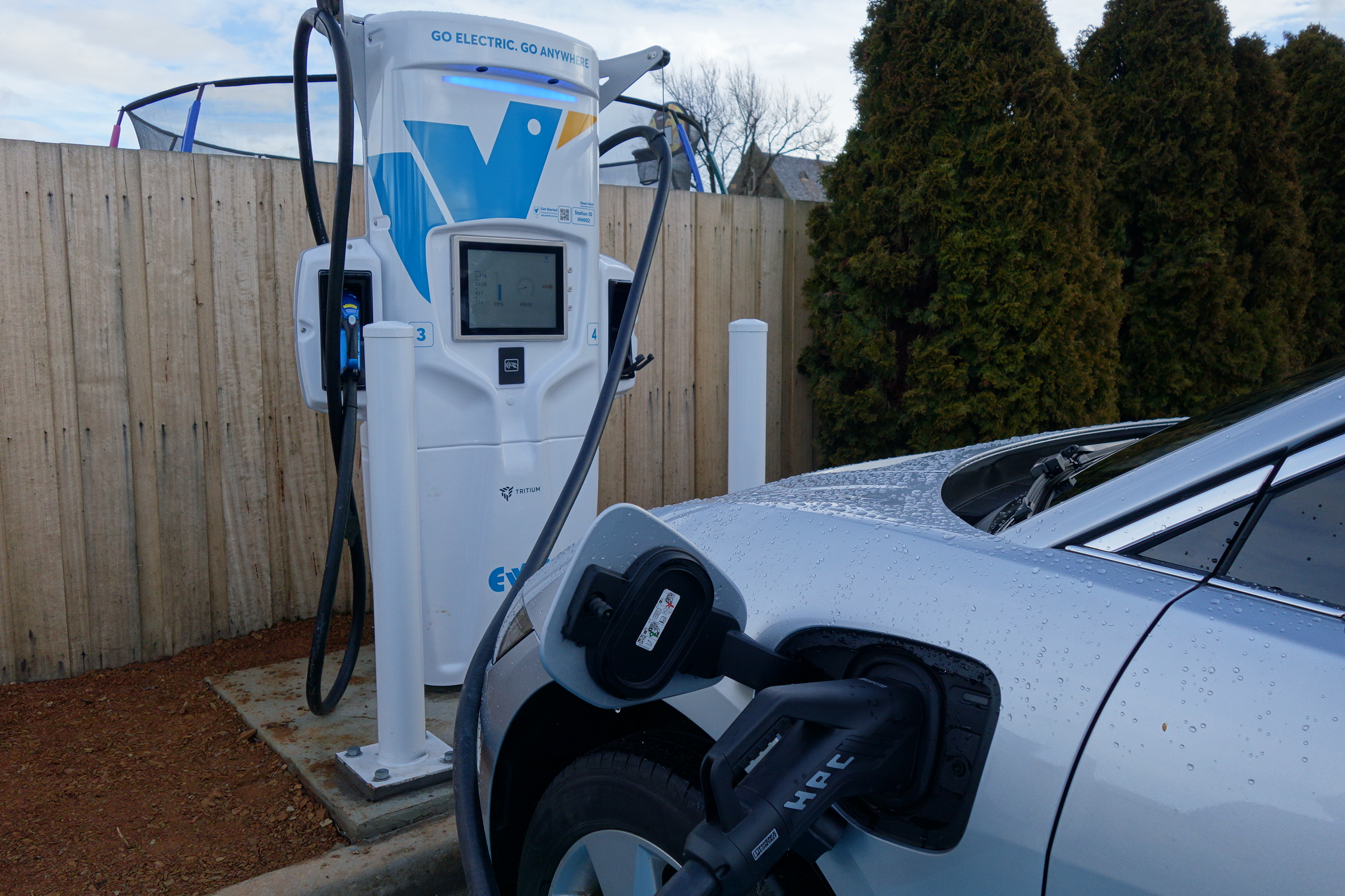 Evie Networks' ultra-rapid charging site in Campbell Town will soon be opening - and it's also the 5th anniversary of the AEVA Tasmanian branch's launch. Electric vehicles from across Tasmania gathered in the middle of our state on Saturday, 15th August 2020 to celebrate both of these events! Members gathered in the Commonwealth Lane carpark to view and try the new chargers. This was followed by lunch at The Grange next door.