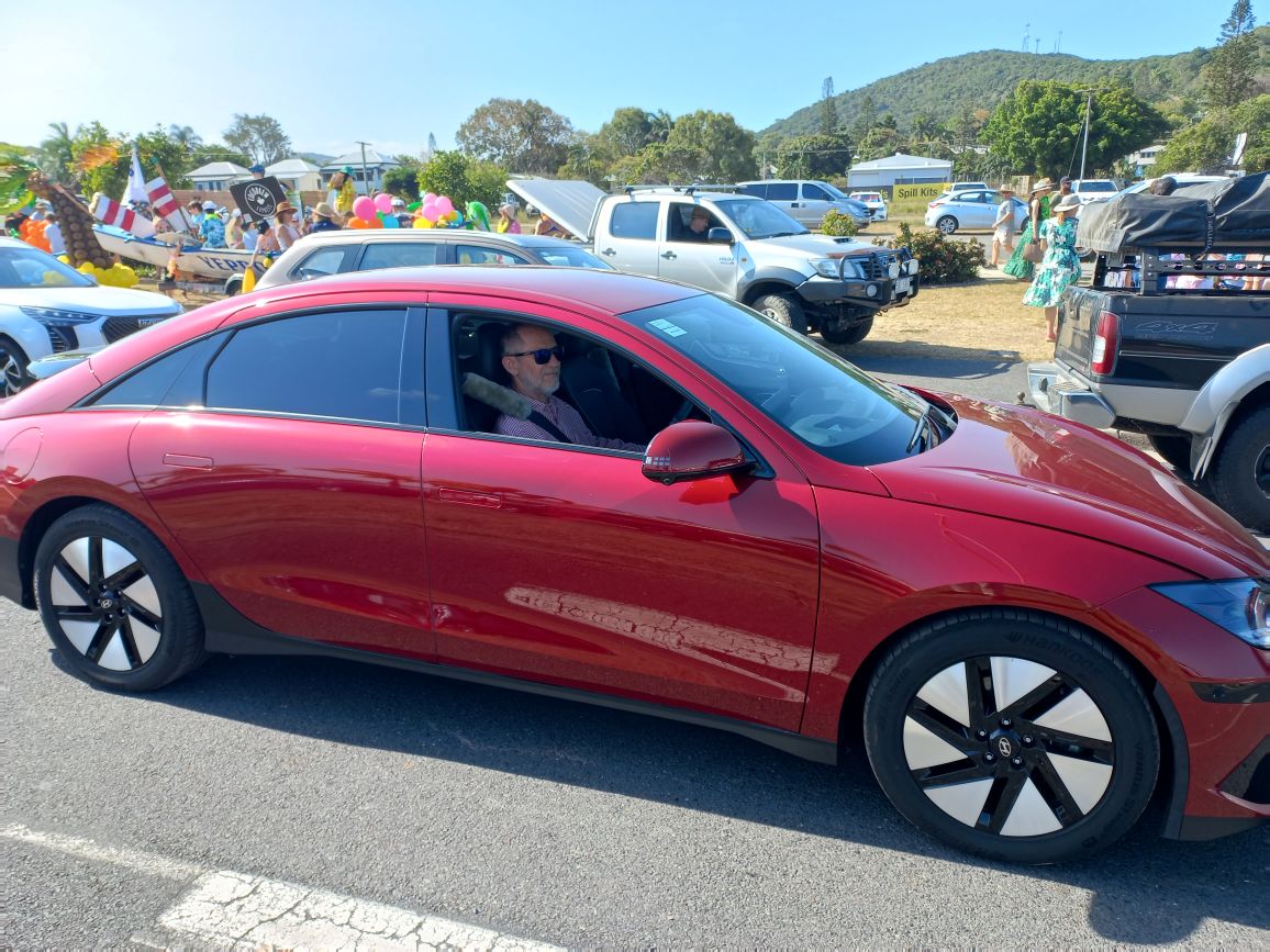 Hundreds of people lined the main street of Yeppoon on Saturday 11th October to watch the annual Lions Pinefest parade. The CQ EV Owners and Friends Facebook group organised six EVs to join the procession of decorated floats in the parade.
