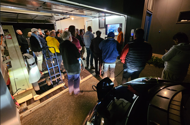 Over 30 enthusiastic people met in Vic Branch treasurer Dan Edwards garage to see and hear about the home battery he has built from a Nissan Leaf degraded battery and integrated into his home electrical system.