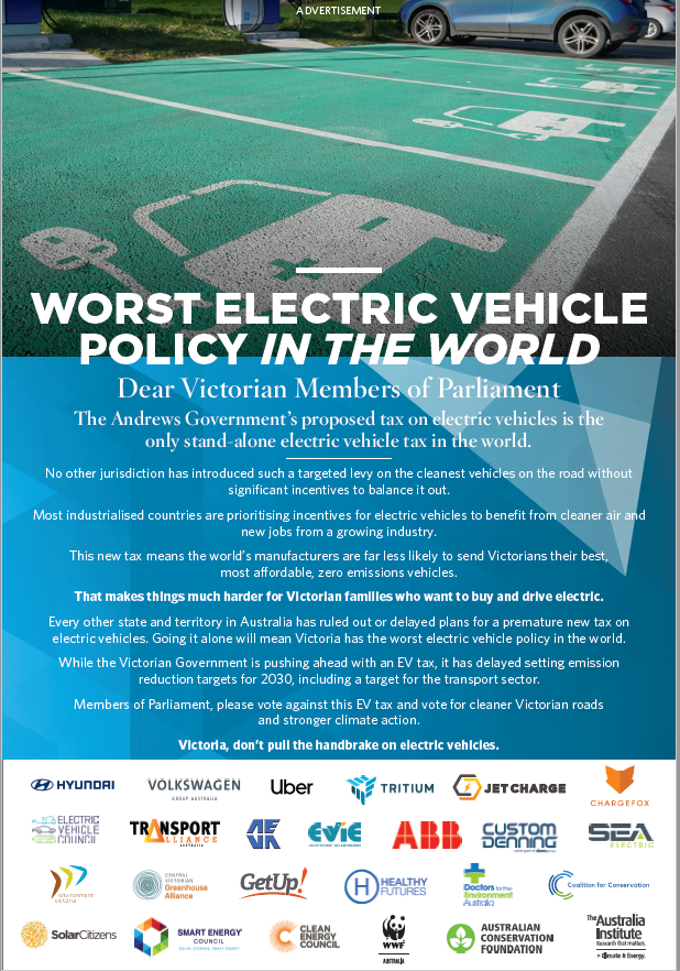 The Road User Charge (RUC) legislation before the Victorian Parliament is poor policy - it only applies to EVs and PHEVs, is not weight corrected, and worst of all, the revenuse collected is not legally earmarked for road and transport infrastructure or maintenance - it just goes to consolidated revenue. The AEVA has offered a workable solution which frustratingly, is still being ignored.